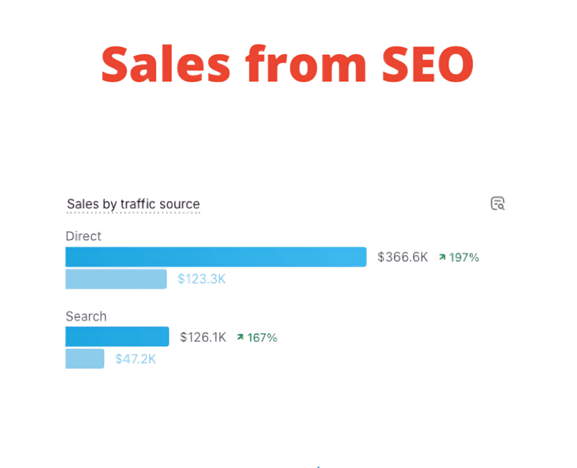 Check out this boost. Sales from search traffic jumped to $126.1K, a 167% increase, showing the power of strong SEO strategies.