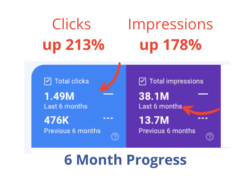 Now that’s what growth looks like. Over the past 6 months, clicks jumped from 7.74K to a powerful 17.1K, while impressions soared past 833K.