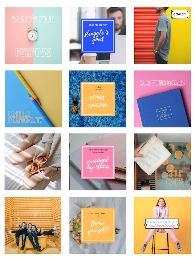 This vibrant collage is more than just pretty pictures — it’s a reminder to live with intention, embrace your uniqueness, and stay motivated. Whether it’s about setting goals, finding purpose, or owning your authenticity, each tile carries a message that hits home.